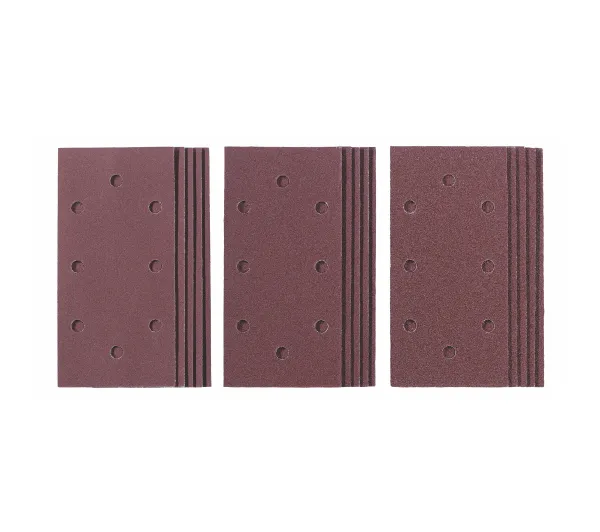 Opis: Zestaw 15 oryginalnych arkuszy ściernych Einhell Q-Stick o wymiarach 187 x 93 mm do szlifowania dużych powierzchni z drewna i metalu, z mocowaniem na rzep i 8-otworową perforacją.