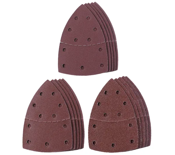 Opis: Zestaw 15 oryginalnych trójkątnych arkuszy ściernych Einhell Q-Stick o wymiarach 150 x 150 x 100 mm do precyzyjnego szlifowania narożników oraz małych powierzchni z drewna lub metalu, z perforacją do odsysania pyłu i mocowaniem na rzep, pasujący do szlifierek delta Einhell TH-OS 1016, TE-OS 1320, TE-OS 18/150 Li Solo.