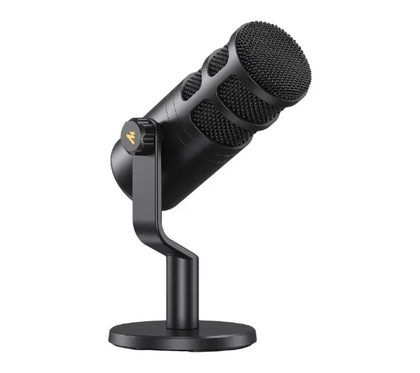 <h2>Mikrofon dynamiczny MAONO PD100 (czarny)</h2><p>Maono PD100 to świetny wybór dla osób, które chcą rozpocząć nagrywanie w domowym studiu lub znacząco poprawić jakość swoich transmisji i materiałów audio. Oferuje czyste, naturalne brzmienie, które pozwala Twojemu głosowi wybrzmieć profesjonalnie i bez zakłóceń. W komplecie otrzymujesz praktyczny stojak z bazą, dzięki czemu bez trudu ustawisz mikrofon stabilnie na biurku i od razu rozpoczniesz pracę.</p><h2>Profesjonalna jakość brzmienia</h2><p>Dynamiczny rdzeń oraz podwójny filtr pop skutecznie dbają o klarowność nagrań i ograniczenie niechcianych głosek wybuchowych. Technologia izolacji szumów redukuje dźwięki tła, co pozwala uzyskać bardziej czysty i skupiony przekaz. Pasmo przenoszenia w zakresie 60 Hz – 14 kHz zapewnia wierne odwzorowanie głosu, dzięki czemu mikrofon doskonale sprawdza się w ambitniejszych projektach audio.</p><h2>Idealny do streamów i nagrań</h2><p>Charakterystyka kardioidalna w połączeniu z systemem End Address (konstrukcja z adresowaniem od czoła mikrofonu) umożliwia precyzyjne wychwytywanie dźwięku bezpośrednio z przodu mikrofonu. Twój głos zyskuje głębię i naturalną barwę, a zbędne odgłosy z otoczenia są ograniczane. W efekcie transmisje, podcasty czy nagrania wideo stają się bardziej wyraziste i autentyczne.</p><h2>Solidne wykonanie i wygoda</h2><p>Kompaktowa, metalowa konstrukcja nadaje urządzeniu elegancki wygląd i zwiększa jego trwałość. Odłączany stojak z regulacją nachylenia do 180° pozwala dopasować ustawienie mikrofonu do własnych potrzeb. Stabilna podstawa z antypoślizgowymi, gumowymi nóżkami tłumi drgania i zapewnia pewne podparcie, a możliwość montażu na ramieniu z gwintem 3/8 cala lub 5/8 cala (brak w zestawie) daje dodatkową elastyczność.</p><h2>Gotowy do pracy z profesjonalnym sprzętem</h2><p>Złącze XLR (External Line Return, symetryczne złącze audio) umożliwia współpracę z kartą dźwiękową Maonocaster AME2 oraz zewnętrznymi mikserami i interfejsami audio. Niezależnie od tego, czy prowadzisz audycję, nagrywasz wokal, tworzysz w domowym studiu czy realizujesz transmisję na żywo, PD100 pomoże Ci osiągnąć wysoką jakość dźwięku. To narzędzie, które pozwoli Ci zrobić świetne wrażenie na słuchaczach.</p>