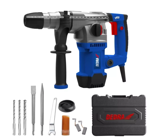 : dłuto, klucz, pojemnik ze smarem, rękojeść dodatkowa, szczotki zapasowe, szpicak, walizka, wiertła