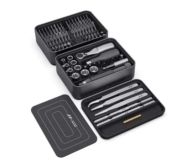 <h2>Zestaw wkrętaków JIMI Home FM-3, 100 sztuk</h2><p>Zestaw wkrętaków FM-3, który zawiera aż 100 elementów, sprawdzi się w pracy przy sprzęcie elektronicznym, komputerach, naprawach telefonów komórkowych itp. Ten poręczny zestaw przyda się także do prostych napraw samochodu, roweru, itp.</p> <h2>3 moduły</h2><p>Dzięki niewielkiej konstrukcji obudowa zestawu została podzielona na 3 moduły, które po złożeniu tworzą łatwa do przechowywania całość. Taki zestaw z powodzeniem zabierzesz do samochodu, zmieści się w torbie lub większej skrzynce narzędziowej. Co więcej, obudowa została wykonana z wytrzymałego tworzywa ABS.</p> <h2>Podkładka magnetyczna</h2><p>Na pierwszym poziomie zestawu znajduje się podkładka magnetyczna, dzięki której nawet najmniejsze metalowe przedmioty, takie jak śruby czy elementy, z niej nie spadną i nie trzeba będzie tracić czasu na ich szukanie. Ponadto na macie znajdują się pola, które ułatwią Ci uszeregowanie elementów na obszarze roboczym.</p> <h2>Dokładny montaż</h2><p>Pod matą magnetyczną znajduje się miejsce na 3 różne rodzaje pęset. Ponadto zestaw zawiera 2 łopatki klinujące, które umożliwiają delikatne otwieranie naprawianych urządzeń. Możesz ich użyć, aby dostać się do wnętrza telefonu komórkowego w celu przeprowadzenia gruntownego czyszczenia lub naprawy elementu, zmniejszając ryzyko porysowania lub zniszczenia telefonu.</p> <h2>Moduł z narzędziami</h2><p>W zestawie znajduje się klucz z grzechotką oraz uchwyt śrubokręta z przydatnymi przedłużkami i przejściówkami, a także pasujące końcówki. Zakres końcówek do klucza grzechotkowego wynosi od 5 do 13, a do wkrętaków H5, H4, H3, 5PH2, 5PH1, 3PH1, SL5, SL3 – 8 podstawowych końcówek o rozmiarze 6,35 mm.</p> <h2>Szeroki wybór bitów</h2><p>Ostatni moduł jest przeznaczony dla 48 końcówek w rozmiarze 4 mm i 20 końcówek w rozmiarze 6,35 mm. Wystarczy nacisnąć przycisk, który powoduje pionowe podniesienie elementów, aby ułatwić wyciąganie poszczególnych bitów. Pod nimi umieszczono pojemnik na śruby i wkręty, a także magnetyzer i demagnetyzer do każdego elementu.</p>