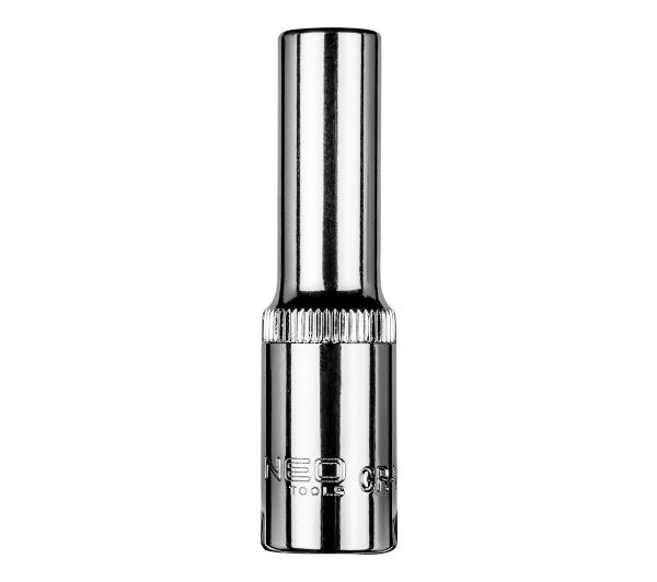 Nasadka sześciokątna długa 3/8" NEO wykonana z wytrzymałej stali chromowo-wanadowej. Radełkowana powierzchnia poprawia chwyt nasadki