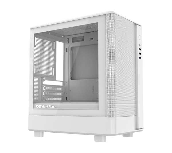 <h2>Obudowa komputerowa Darkflash DB330M Mesh (biała)</h2><p>Darkflash DB330M Mesh to kompaktowa obudowa przeznaczona dla płyt głównych M-ATX (Micro Advanced Technology eXtended, pomniejszony standard płyt głównych) i ITX (Information Technology eXtended, kompaktowy standard płyt głównych), idealna do nowoczesnych zestawów o niewielkich gabarytach. Wymiary 368 × 218 × 400 mm pozwalają zamontować kartę graficzną o długości do 305 mm oraz chłodzenie procesora o wysokości do 180 mm. Solidna stalowa konstrukcja SPCC (Steel Plate Cold Commercial, stal walcowana na zimno) 0,5 mm w połączeniu z panelem ze szkła hartowanego i frontem typu mesh zapewnia trwałość, dobrą wentylację i atrakcyjny wygląd. Obudowa sprawdzi się zarówno przy chłodzeniu powietrzem, jak i cieczą.</p><h2>Skuteczny przepływ powietrza</h2><p>Konstrukcja umożliwia montaż do 7 wentylatorów rozmieszczonych z przodu, u dołu, u góry i z tyłu obudowy. Górna część obsługuje wentylatory 120 lub 140 mm, a pozostałe miejsca przeznaczone są dla modeli 120 mm. Takie rozmieszczenie sprzyja naturalnemu obiegowi powietrza i skutecznemu odprowadzaniu ciepła. Dzięki temu podzespoły mogą pracować stabilnie nawet pod większym obciążeniem.</p><h2>Gotowa na chłodzenie wodne</h2><p>Obudowa pozwala na instalację chłodnicy wodnej o długości do 240 mm w górnej części. Daje to możliwość zastosowania wydajnego zestawu AIO (All-In-One, zintegrowane chłodzenie cieczą) bez kompromisów przestrzennych. Jednocześnie zachowana jest kompatybilność z wysokimi chłodzeniami powietrznymi do 180 mm. To elastyczne rozwiązanie dla różnych preferencji użytkownika.</p><h2>Przewiewny front i ochrona przed kurzem</h2><p>Przedni panel wykonany z siatki mesh poprawia dopływ świeżego powietrza do wnętrza obudowy. Jednocześnie pełni funkcję filtra przeciwkurzowego, ograniczając osadzanie się zanieczyszczeń. Dodatkowe otwory wentylacyjne na górze i spodzie wspierają efektywne chłodzenie całego zestawu.</p><h2>Miejsce na wydajne karty graficzne</h2><p>Wnętrze obudowy umożliwia montaż kart graficznych o długości do 305 mm. Cztery sloty PCI (Peripheral Component Interconnect, magistrala rozszerzeń) pozwalają na instalację modeli dwu- i trzyslotowych. Przemyślany układ komory zasilacza i przewodów nie ogranicza przestrzeni dla GPU (Graphics Processing Unit, procesor graficzny). Dzięki temu możesz bez problemu zbudować wydajny zestaw gamingowy.</p><h2>Estetyczna prezentacja wnętrza</h2><p>Boczny panel ze szkła hartowanego pozwala wyeksponować komponenty i podświetlenie RGB (Red Green Blue, model barw czerwonej, zielonej i niebieskiej). Panel można łatwo zdemontować bez użycia narzędzi, co ułatwia dostęp do wnętrza. To rozwiązanie łączy wygodę użytkowania z nowoczesnym wyglądem komputera.</p><h2>Porządek i szybki dostęp do złączy</h2><p>Z tyłu obudowy przewidziano przestrzeń i otwory do estetycznego prowadzenia kabli, co poprawia cyrkulację powietrza w głównej komorze. Uporządkowane wnętrze ułatwia montaż i późniejszą rozbudowę. Na panelu przednim znajdują się port USB (Universal Serial Bus, uniwersalna magistrala szeregowa) 3.0, dwa porty USB 2.0, złącze audio HD (High Definition Audio, dźwięk wysokiej rozdzielczości) oraz przycisk zasilania, zapewniając wygodny dostęp do najważniejszych funkcji.</p><h2>Uniwersalna baza pod komputer</h2><p>Dolna część obudowy mieści standardowy zasilacz ATX (Advanced Technology eXtended, standard płyt głównych), bez typowych ograniczeń małych konstrukcji. DB330M Mesh obsługuje płyty główne M-ATX i ITX, dzięki czemu sprawdzi się w komputerach domowych, biurowych i gamingowych. Brak fabrycznie zamontowanych wentylatorów pozwala samodzielnie dobrać system chłodzenia dopasowany do własnych potrzeb.</p>