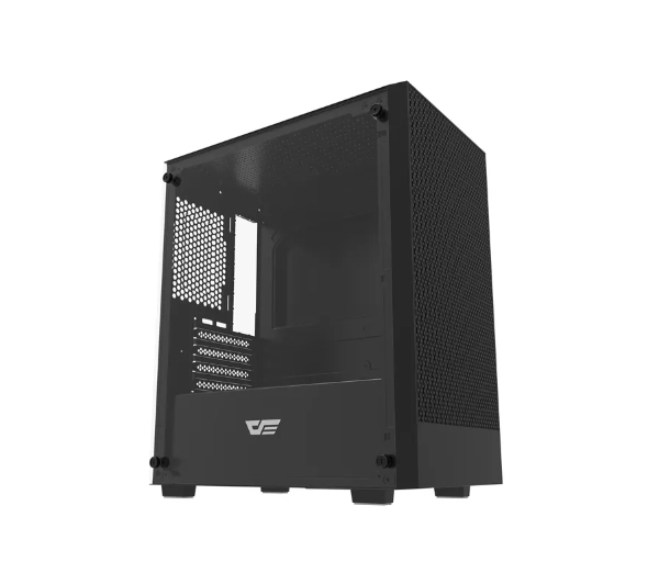 <h2>Obudowa komputerowa Darkflash M305 bez wentylatorów (czarny)</h2><p>Darkflash M305 to kompaktowa obudowa w formacie Micro-ATX (Micro Advanced Technology eXtended, kompaktowy standard płyty głównej), stworzona dla użytkowników ceniących połączenie estetyki, funkcjonalności i rozsądnej ceny. Przemyślana konstrukcja oferuje szeroką kompatybilność z podzespołami, nie rezygnując przy tym z nowoczesnego designu. Przezroczysty panel boczny z hartowanego szkła pozwala wyeksponować wnętrze komputera, podkreślając zarówno efektowne podświetlenie RGB (Red, Green, Blue – system podświetlenia oparty na trzech kolorach: czerwonym, zielonym i niebieskim), jak i minimalistyczne zestawy. Dzięki temu stanowisko komputerowe zyskuje elegancki, dopracowany wygląd i staje się integralną częścią aranżacji przestrzeni.</p><h2>Praktyczne rozwiązania na co dzień</h2><p>Szklany panel boczny został osadzony na wygodnych śrubach radełkowanych, co umożliwia szybki dostęp do wnętrza obudowy bez użycia narzędzi. To duże ułatwienie podczas rozbudowy zestawu lub regularnej konserwacji. Przedni panel o ażurowej strukturze nadaje obudowie nowoczesny charakter, a jednocześnie sprzyja lepszej wentylacji. Dzięki temu podzespoły mogą pracować w stabilnych temperaturach nawet przy większym obciążeniu.</p><h2>Wydajny system chłodzenia</h2><p>Konstrukcja Darkflash M305 umożliwia montaż do siedmiu wentylatorów 120 mm co daje pełną kontrolę nad cyrkulacją powietrza. Taki zapas miejsca pozwala zbudować skuteczny system chłodzenia dostosowany do indywidualnych potrzeb. Odpowiedni przepływ powietrza wspiera stabilną pracę procesora, karty graficznej i pozostałych komponentów. Obudowa sprawdzi się więc zarówno podczas intensywnej rozgrywki, jak i pracy z wymagającym oprogramowaniem.</p><h2>Kompaktowy format, duże możliwości</h2><p>Mimo niewielkich wymiarów zewnętrznych 325 × 195 × 387 mm, wnętrze obudowy zostało zaprojektowane w sposób maksymalnie efektywny. Bez trudu pomieści kartę graficzną o długości do 300 mm oraz chłodzenie procesora o wysokości do 160 mm. Obsługa płyt głównych w standardach M-ATX i ITX (Information Technology eXtended, bardzo kompaktowy standard płyty głównej) daje dużą swobodę konfiguracji. Dzięki temu M305 sprawdzi się zarówno w komputerach do codziennej pracy, jak i w kompaktowych zestawach gamingowych.</p><h2>Przemyślane wnętrze i miejsce na dane</h2><p>W środku przewidziano dedykowane miejsca montażowe na dwa dyski SSD (Solid State Drive, dysk półprzewodnikowy) oraz dwa klasyczne dyski HDD (Hard Disk Drive, dysk twardy). Takie rozwiązanie ułatwia logiczne rozplanowanie systemu, gier i przestrzeni na dane. Układ wnętrza sprzyja estetycznemu prowadzeniu przewodów, co pozwala zachować porządek. Lepsza organizacja kabli przekłada się nie tylko na wygląd, ale także na sprawniejszy obieg powietrza.</p><h2>Szybki dostęp do portów</h2><p>Na górnej krawędzi obudowy umieszczono wygodny panel złączy, w tym port USB 3.0 (Universal Serial Bus 3.0, uniwersalna magistrala szeregowa) umożliwiający szybki transfer danych. Pozwala on również na komfortowe podłączanie akcesoriów i ładowanie urządzeń mobilnych. Umiejscowienie portów u góry zapewnia łatwy dostęp niezależnie od ustawienia komputera. To rozwiązanie, które realnie podnosi wygodę codziennego użytkowania.</p>