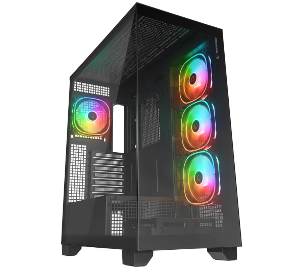 Funkcje: okno w obudowie, możliwość montażu wodnego chłodzenia, wyciszenie, szkło hartowane, regulator prędkości wentylatorów
