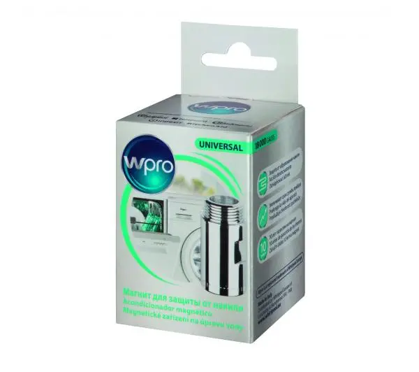 Magnetyczny odkamieniacz wody WPRO MWC 015 do pralek i zmywarek. Zapobiega tworzeniu się kamienia kotłowego w urządzeniach przedłużając w ten sposób ich żywotność. Odkamieniacz do montażu na wężu doprowadzającym wodę.
