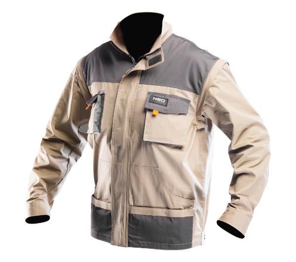 Bluza robocza 2 w 1, 100% bawełna, 180 g/m2, wzmocnienia w rejonach narażonych na przetarcie, odpinane rękawy pozwalające zmienić bluzę w kamizelkę roboczą, certyfikat CE, EN ISO 13688:2013Bluza robocza 2 w 1 NEO to innowacyjne rozwiązanie, pozwalające szybko zmienić bluzę w kamizelkę, odpinając łatwo rękawy. Wykonana z wysokiej jakości materiału wzmocnionego w miejscach narażonych na przetarcie. Podwójnie przeszyte szwy, zwiększające trwałość oraz elementy odblaskowe, zapewniające widoczność użytkownika. Solidne kieszenie wytrzymują duże obciążenie i przechowają wszystkie niezbędne podczas pracy narzędzia. Oddychający materiał to niepodważalna zaleta, dająca wysoki komfort użytkowania. Gwarantem jakości jest certyfikat europejski oraz wykonanie zgodne z normą EN ISO 13688:2013.