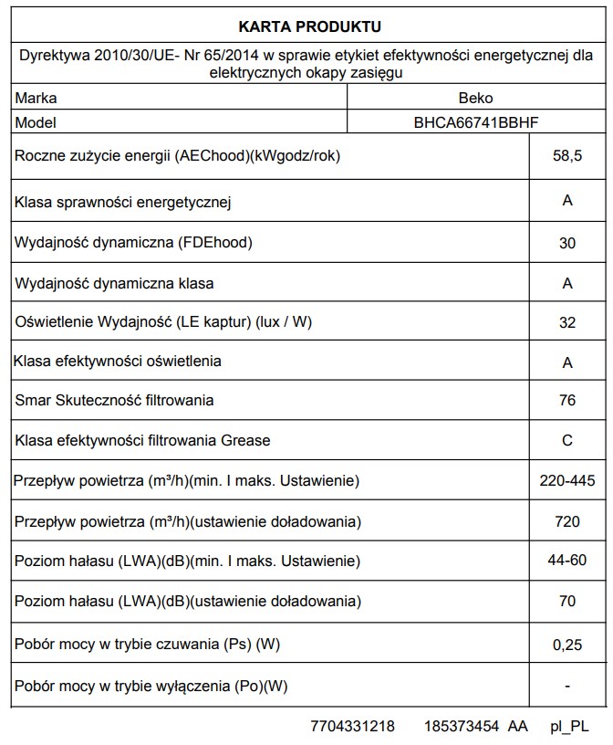 58 dB - Filtry przeciwtłuszczowe:
