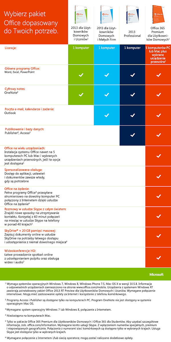 Skład pakietu: Excel, OneNote, Outlook, PowerPoint, Word