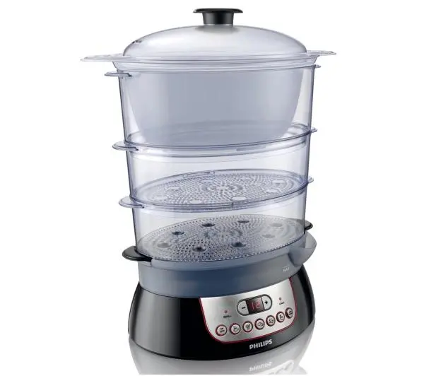 Dodatkowe opcje: podtrzymywanie temperatury, pojemniki z wyjmowanym dnem do dużych porcji, timer, wyświetlacz LCD