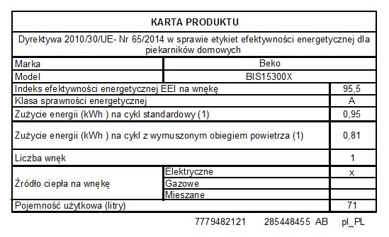 Zużycie energii (tryb tradycyjny): 0,95 kWh