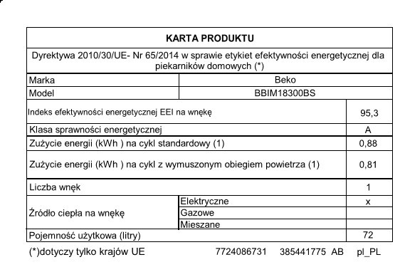 Zużycie energii (tryb tradycyjny): 0,88 kWh