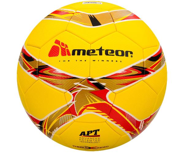 PIŁKA NOŻNA METEOR 360 GRAIN TBGrain TB to model z najnowszej linii piłek "360" cenionej marki Meteor.Została wykonana z wysokiej jakości materiałów syntetycznych, co podnosi jej wytrzymałość i długowieczność.32 panele połączone termicznie sprawiają, że powierzchnia piłki jest niemal idealnie gładka a sama osłona charakteryzuje się dużą trwałością. Użycie piankowego podszycia poprawia miękkość, dzięki czemu piłka łatwiej dopasowuje się do nogi, zwiększając tym samym kontrolę nad nią. Zastosowanie lateksowej dętki gwarantuje zachowanie odpowiedniego kształtu a butylowy zawór zapewnia wysoką szczelność piłki. Bardzo dobrej jakości materiały syntetyczne sprawiają, że piłka jest niezwykle wytrzymała, a jej powierzchnia zapewnia graczom idealną kontrolę, pewność strzału i odpowiedni tor lotu we wszystkich warunkach pogodowych.Specjalnie zaprojektowana grafika i kolor znacznie poprawiają widoczność w czasie gry.Specyfikacja:Model: 360Rozmiar: 5Materiał: PU, dętka lateks, zawór butylPowłoka: GrainPodszycie: pianka EVAKolor: Żółta z czerwono - złotymi paskamiPrzeznaczenie: na nawierzchnie trawiasteCechy charakterystyczne: panele łączone termicznie