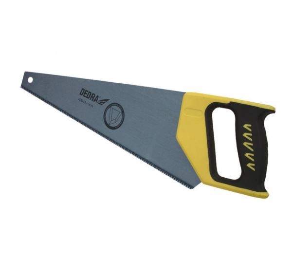DEDRA 1212 Piła płatnica 450mm, uchwyt wykładany gumą, hartowane zębyCharakterystyka:<ul> <li>Piła płatnica, uchwyt wykładany gumą, hartowane zęby 450mm</li> <li>Miękka rękojeść</li></ul>Zastosowanie:obróbka drewnaDane techniczne:<ul> <li>Materiał: stal</li> <li>Ilość zębów na cal: 7/1"</li> <li>Ilość krawędzi tnących: 3</li> <li>Długość 450 mm</li> <li>Waga: 0.52 kg </li></ul>