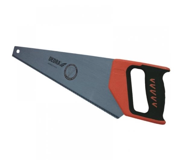 Dedra 1218 Piła płatnica 450mm, uchwyt wykładany gumą, hartowane zębyCharakterystyka:<ul> <li>Piła płatnica, uchwyt wykładany gumą, hartowane zęby 400mm</li> <li>Miękka rękojeść</li></ul>Zastosowanie:obróbka drewnaDane techniczne:<ul> <li>Materiał: stal</li> <li>Ilość zębów na cal: 7/1"</li> <li>Ilość krawędzi tnących: 2</li> <li>Długość 450 mm</li> <li>Waga: 0.52 kg </li></ul>