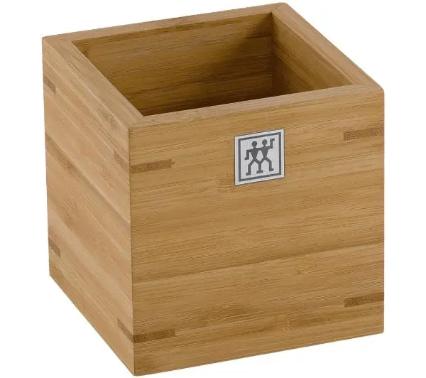 Dzięki bambusowemu pojemnikowi na akcesoria od firmy Zwilling łatwo zapanujesz nad chaosem w swoim przyborniku. Wraz z nim zawsze będziesz mieć pod ręką tylko najpotrzebniejsze rzeczy, które będą skupione razem w jednym miejscu. Nigdy już kłopotliwego szukania zagonionych przyborów.Sześcienny pojemnik pozwala na przechowywanie wielu akcesoriów kuchennych codziennego użytku. Wysokiej klasy bambus, z którego powstał, gwarantuje stylowy wygląd, ale też i odpowiednią wytrzymałość. Wymiary: 16 x 15 x 16 cm