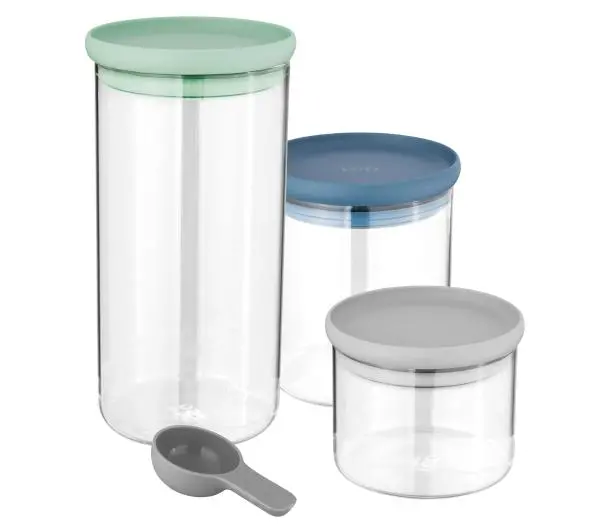 Mielona kawa, cukier waniliowy, świeże zioła… zachowaj wszystko świeże i smaczne z pomocą tych 3 wygodnych pojemników na żywność. Ich pokrywki natychmiast dodadzą kuchni odrobiny koloru, a duży otwór pozwala łatwo je napełnić i wyjąć odpowiednią ilość za pomocą dołączonej miarki. Ponadto pojemniki można układać jeden na drugim, co zapewnia oszczędność miejsca. Można je myć w zmywarce, więc ich czyszczenie jest dziecinnie proste!
