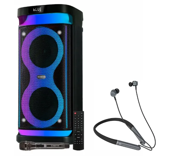 Power Audio Manta SPK0601B100 ARGOS 100W Bluetooth Mikrofon Karaoke Czarny + Słuchawki MNH02