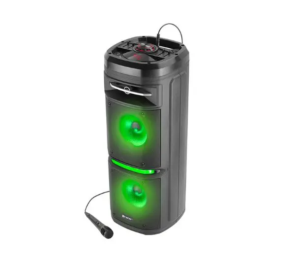 Funkcje dodatkowe: czytnik kart pamięci SD, funkcja TWS True Wireless Stereo (łączenie dwóch systemów), karaoke, podświetlenie diodami LED, USB - muzyka