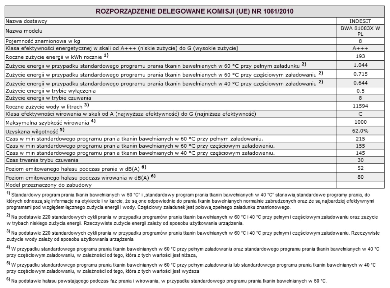 Zastosowane technologie: certyfikat Woolmark, codzienne pranie Indesit Push & Wash