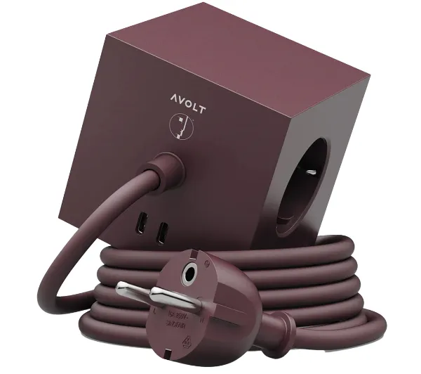 Kostka Avolt 3 gniazda 2x USB-C 1,8m Bordowy
