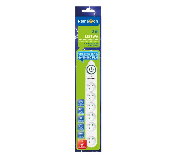 <h3>Listwa antyprzepięciowa Reinston</h3><p>Podłączanie urządzeń elektronicznych do listwy antyprzepięciowej Reinston chroni je przed nieprzewidzianymi przepięciami, takimi jak zwarcia i uderzenia pioruna. Listwa chroni również urządzenia przed gwałtownymi wahaniami napięcia lub przebiciami, które mogą uszkodzić lub nawet zniszczyć elektronikę. Listwa antyprzepięciowa Reinston jest idealną ochroną telewizorów, sprzętu HiFi, laptopów, komputerów stacjonarnych, drukarek, routerów i innych urządzeń biurowych i jest wykonana z wysokiej jakości materiałów niepalnych </p> <p> </p><h3>Główne cechy</h3><p>• 6 gniazd z uziemieniem• Długość przewodu 3 m• Doskonałe zabezpieczenie przeciwprzepięciowe dla urządzeń elektronicznych (warystor)• Bezpieczne dla dzieci • Obudowa wykonana z materiałów niepalnych• Podświetlany włącznik sieciowy• Kolor: biały </p>