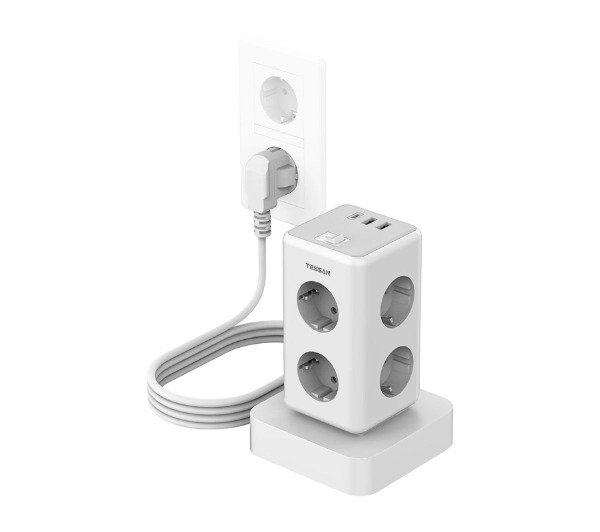 Listwa Tessan TS-306TS-C 6 gniazd 1x USB C 2x USB-A Biały