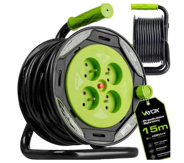 Przedłużacz bębnowy Vayox VA0435-15 4 gniazda 15m Czarny