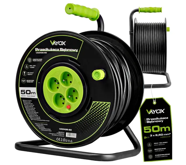 Przedłużacz bębnowy Vayox VA0436-50 4 gniazda 50m Czarny