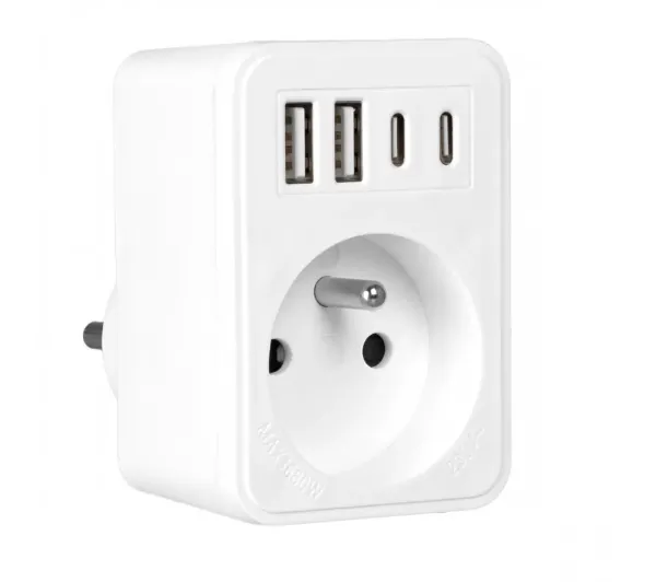 Rozgałęziacz Vayox VA0375 1 gniazdo 2x USB-A 2x USB-C Biały