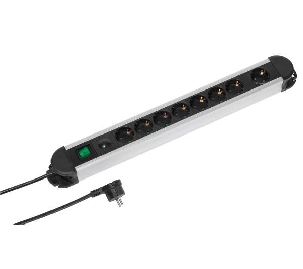 Informacje dodatkowe: aluminiowa obudowa, płaska wtyczka, jedno duże gniazdo dla większych wtyczek, specjalne zabezpieczenia styków minimalizuje ryzyko przypadkowego kontaktu, wtyki obrócone o 45 stopni, możliwość montażu na ścianie, 8 gniazd schuko