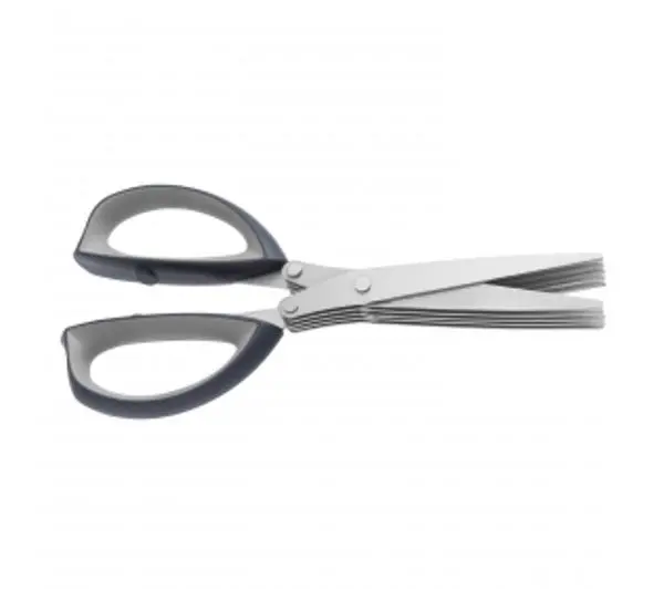 Przycinanie, krojenie i siekanie świeżych ziół nigdy nie było łatwiejsze dzięki nożyczkom z wieloma ostrzami. 5 ostrzy ze stali nierdzewnej, pozwala uciąć równe kawałki, które pięknie dekorują potrawy i równomiernie się gotują. Antypoślizgowe rączki zapewniają pewny chwyt dla dodatkowego bezpieczeństwa. Szczotka dołączona do nożyczek skutecznie czyści ostrza i może być również używana jako przydatne narzędzie do zgarniania posiekanych ziół.