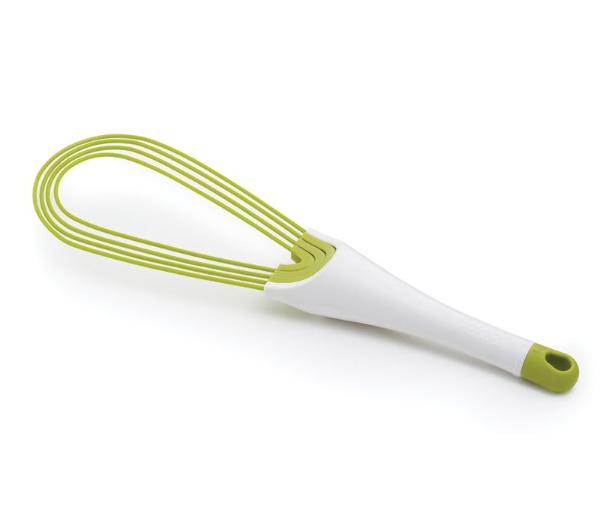 Trzepaczka Twist<ul> <li>Dwie trzepaczki w jednej, jedna płaska, a po przekręceniu staje się balonową. W trzepaczce stalowe druciki pokryte są silikonem, dzięki czemu nie rysują powierzchni patelni i innych naczyń. Silikonowa powierzchnia odporna jest na temperaturę do 270 stopni C.</li> <li>Płaska trzepaczka doskonale nadaje się do mieszania sosów w płytkich patelniach, natomiast po przekręceniu staje się balonową trzepaczką do ubijania jajek czy śmietanki.</li> <li>Produkt wygrał nagrodę reddot design award 2012</li> <li>Całą trzepaczkę można z łatwością rozłożyć do mycia, a złożona na płasko jest łatwa w przechowywaniu.</li> <li>Materiał: stal nierdzewna, tworzywo sztuczne, silikon</li> <li>Kolor: biało - zielony</li> <li>Wymiary: 29,5 x 8 x 4 cm</li> <li>Można myć w zmywarce</li></ul>