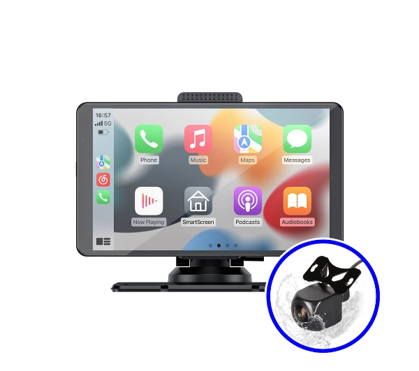 Wyposażenie: instrukcja obsługi, ładowarka samochodowa, dodatkowy uchwyt, kabel zasilający, kamera cofania, kabel łączący tylną kamerę, stałe mocowanie
