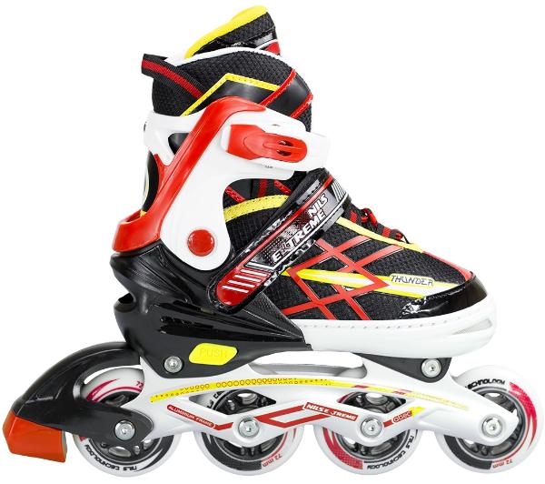 NA1160 Nils Extreme to łyżworolki przeznaczone są do jazdy rekreacyjnej dla osób początkujących i średnio zaawansowanych.Lekki i wytrzymały but wraz z systemem pasków (na rzep, klamra dwusekcyjna, sznurowanie) zapewnia maksymalne bezpieczeństwo. Model wyposażony jest w czterostopniową regulację rozmiaru, dzięki której można łatwo i szybko dopasować rozmiar buta do stopy użytkownika. Ich atrakcyjny wygląd to efekt, ciekawego wzornictwa, ale przede wszystkim użycia bardzo wysokiej jakości materiałów. Zastosowany system wentylacji buta oraz profilowana wkładka z oddychającą membraną wpływają bezpośrednio na zwiększenie komfortu użytkownika.Łyżworolka wyposażona jest w specjalną aluminiową płozę oraz hamulec, który gwarantuje bezpieczne zatrzymanie. Z kolei łożyska klasy ABEC 7 pozwalają na mniejsze opory toczenia, czyli szybszą jazdę.