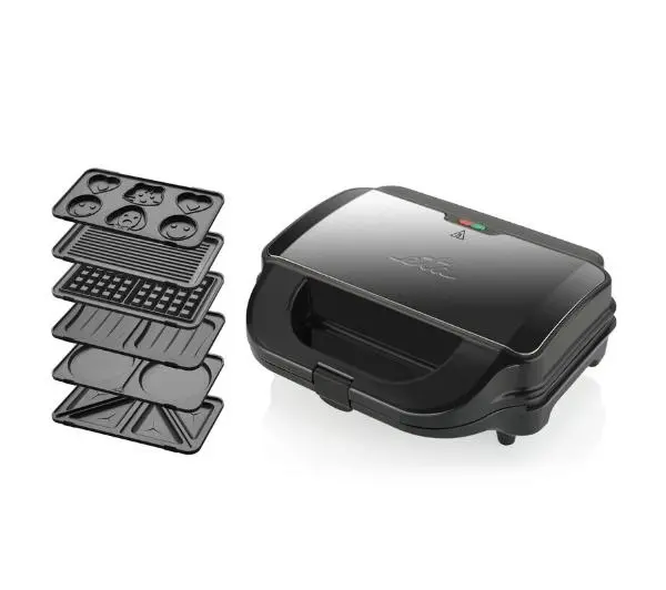 - Płyty w zestawie: trójkąty, gofry, panini/grill, muszle, ciastka, naleśniki