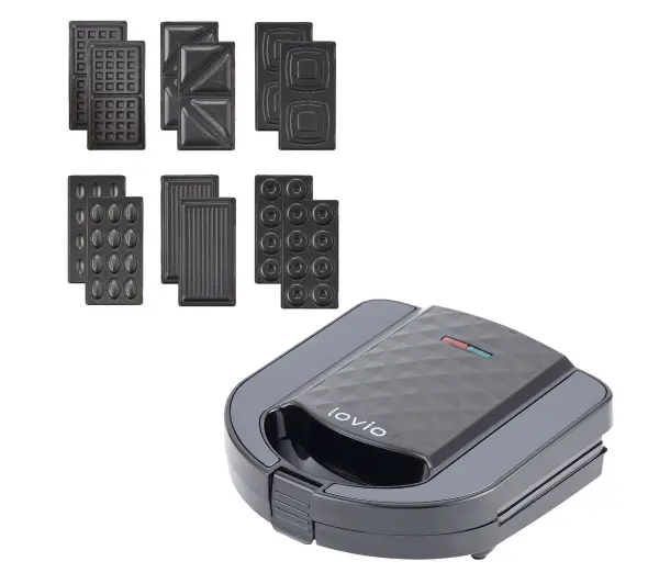 Opiekacz Lovio Home 6w1 LVSM001BK Kwadraty Trójkąty Gofry Panini Ciasta Donaty 750W
