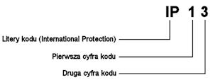 | 3 | - ochrona przed natryskiwaniem wodą pod dowolnym kątem do 60° od pionu z każdej strony |