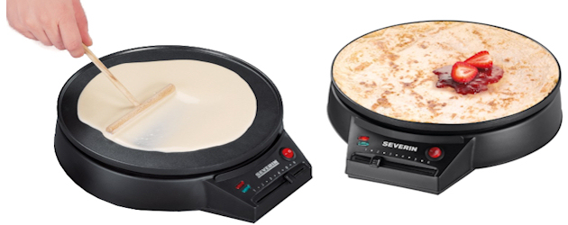 Naleśnikarka w prosty i szybki sposób pomoze Ci usmażyć naleśniki. Pokryta jest specjalną powłoką zapobiegającą przywieraniu naleśników. Niektóre modele mogą mieć zabudowane krawędzie, co zapobiega wylewaniu się ciasta na blat kuchenny. W zestawie możesz otrzymać wałek ułatwiający równomierne rozprowadzenie ciasta i łopatkę do przewracania naleśników.