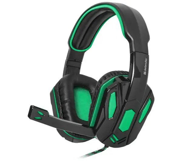 Słuchawki przewodowe z mikrofonem Defender Warhead G-275 Nauszne Czarno-zielony