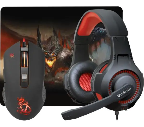 Słuchawki przewodowe z mikrofonem Defender Devourer MHP-006 zestaw dla graczy: myszka słuchawki i podkładka Nauszne Czarny