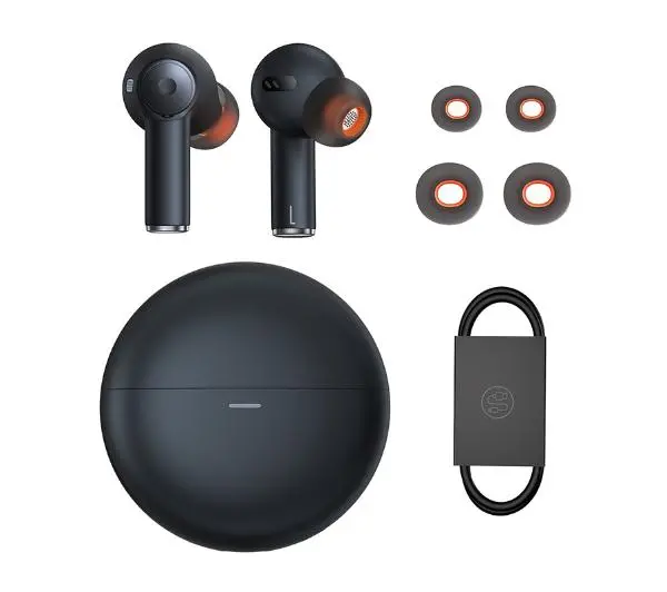Wyposażenie : adaptery douszne (S, M, L), etui ładujące, instrukcja obsługi, przewód USB