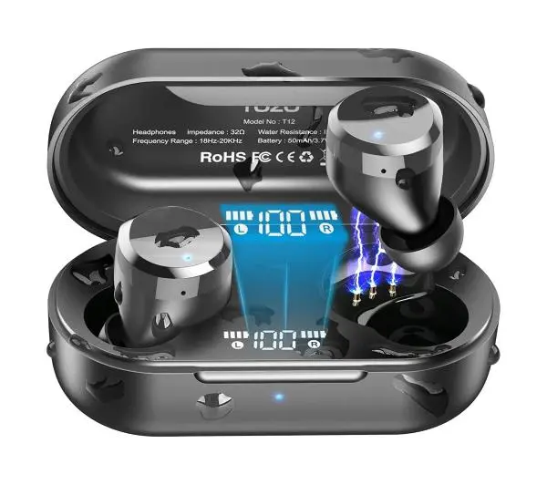 Słuchawki bezprzewodowe Tozo T12 Dokanałowe Bluetooth 5.3 Czarny