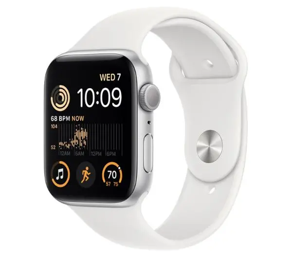 Apple Watch SE 2gen GPS koperta 44mm z aluminium Srebrny pasek sportowy Biały