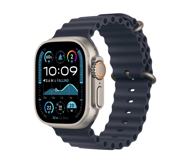 <h2>Apple Watch Ultra 2</h2>Apple Watch Ultra 2 to idealny towarzysz codziennych zadań. Bogaty wybór funkcji zachwyca – od płatności mobilnych, przez monitorowanie treningów, po zdalne sterowanie funkcjami iPhone'a. Dodatkowo jego prosty, elegancki design z pewnością przyciągnie wzrok. Ekstremalna wytrzymałość, dzięki której zegarek doskonale sprawdzi się nawet podczas trudnych podróżyZegarek ma bardzo wytrzymałą baterię, która pozwala mu pracować nawet przez 36 godzin!Podwójna częstotliwość GPS, dokładne pomiary trasy i odległości w każdych warunkachMonitorowanie tętna, oddechu, temperatury, analiza snu z fazami REM i EKG – na twoim nadgarstkuIdealny partner podczas biegania – automatyczne strefy tętna, spersonalizowane treningi i precyzyjne śledzenie tempaAplikacja Oceanic+ zmieni zegarek w komputer nurkowy!Słuchaj muzyki prosto z zegarka dzięki wbudowanemu głośnikowi <h2>Poznaj Apple Watch Ultra 2</h2> Gotowy na największe wyzwania Apple Watch Ultra 2 to wyjątkowo wytrzymałe urządzenie. Zawdzięcza to między innymi 49-milimetrowej kopercie z tytanu. Sprzęt wytrzyma nawet zanurzenie w wodzie na głębokość do 40 metrów1. Wszystkie informacje wyświetlane są na ekranie o jasności 3000 nitów, dzięki temu nawet w pełnym słońcu w środku dnia odczytasz powiadomienia. Zegarek jest więc niezawodnym akcesorium, które sprawdzi się w każdych warunkach. Płynna kontrola Dzięki programowalnemu przyciskowi możesz precyzyjnie kontrolować przebieg treningu. Masz też pewność, że Apple Watch Ultra 2 nie rozładuje się zbyt szybko2. Jego bateria w normalnym trybie wytrzyma do 36 godzin3, w trybie niskiego zużycia energii czas ten wyniesie do 72 godzin3. Nawet w trakcie intensywnego treningu, gdy użytkownik korzysta ze wszystkich funkcji urządzenia, zegarek rozładuje się dopiero po mniej więcej 17 godzinach.4 Precyzyjna lokalizacja Z Apple Watch Ultra 2 twój trening nie tylko będzie przynosił jeszcze lepsze rezultaty, ale też będzie przyjemniejszy. GPS o podwójnej częstotliwości zapewni doskonałą precyzję, którą zawdzięcza zaawansowanemu sygnałowi i satelitom. Swoją dokładność zegarek zawdzięcza też niestandardowym algorytmom pozycjonowania i danym z Map Apple. Twoja lokalizacja będzie dokładnie śledzona, a ty uzyskasz bardzo dokładne dane z przeprowadzonego treningu. Idealny towarzysz do biegania Zegarek przekaże ci wiele informacji o treningach, a dzięki nim lepiej zrozumiesz, w jaki sposób zwiększyć efektywność ćwiczeń. Lepiej też rozplanujesz czas na odpoczynek. Na podstawie twoich danych zdrowotnych, które dostarczane są przez czujniki tętna, obliczane i personalizowane są strefy treningowe. Ćwiczenia z Apple Watch Ultra 2 to sposób na inteligentne planowanie wysiłku, dostosowane do indywidualnych potrzeb i celów zdrowotnych. Bij swoje rekordy Skorzystaj z funkcji Tempo bazowe, aby monitorować dystans i czas biegu, lub wybierz opcję Wyścig na trasie, aby pobić swój wcześniejszy wynik. Dodatkowo możesz stworzyć własny plan treningowy, który obejmie rozgrzewkę, powtórzenia, regeneracyjne interwały i czas na odpoczynek, z automatycznymi podpowiedziami, kiedy zmieniać etapy ćwiczeń. Apple Watch Ultra 2 to doskonały asystent podczas treningu! Zwiększ swoją intensywność Miłośnicy jazdy na rowerze – niezależnie, czy preferują szosę, miejskie wycieczki, czy może jazdę po górach – pokochają Apple Watch Ultra 2. W czasie jazdy zegarek pokaże między innymi aktualną prędkość, strefy tętna i wysokość n.p.m. Za pomocą pokrętła Digital Crown można zmieniać typ wyświetlanej informacji. Nic nie stoi na przeszkodzie, by informacje odczytywane przez zegarek bezpiecznie śledzić też na dużym ekranie iPhone’a przyczepionego do kierownicy! Jeszcze więcej danych Apple Watch Ultra 2 odczyta też informacje z zewnętrznych akcesoriów. Mogą one przesłać na ekran zegarka informacje, takie jak kadencja lub moc. Jeżeli smartfon wykryje miernik mocy, to automatycznie obliczy moc progową (maksymalna intensywność, którą kierujący rowerem jest w stanie utrzymać przez godzinę). Dzięki tym informacjom zyskasz jeszcze większą świadomość treningową. Nie tylko na lądzie Z Apple Watch Ultra 2 skorzystają nie tylko biegacze czy rowerzyści, ale też pływacy. Urządzenie potrafi rozpoznać styl pływania i precyzyjnie zmierzyć tempo i dystans, a także dostarczy bardziej zaawansowanych informacji, takich jak SWOLF (pośredni wskaźnik efektywności). Za pomocą zegarka ustawisz też własny program treningowy, który krok po kroku przeprowadzi cię przez cały trening, w tym przez fazy regeneracji. Ze wskazówkami, które smartwatch oferuje na każdym etapie, maksymalnie zoptymalizujesz swoje rezultaty. Kompan długich wędrówek Lubisz długie wycieczki w nieznane miejsca? Dzięki Apple Watch Ultra 2 zyskasz szybki dostęp do map offline5, własnych tras i kompasu. Funkcja Ślad umożliwia wykorzystanie danych GPS, by nigdy nie zgubić się na szlaku, gdy brakuje zasięgu. Wystarczy kilka dotknięć, aby stworzyć własne trasy lub odnaleźć interesujące miejsca. Podczas wyprawy zegarek zapisuje wszystkie informacje zdrowotne, a także zapisuje punkty, w których dostępna była łączność komórkowa. Zbadaj morskie głębiny Z Apple Watch Ultra 2 zbadasz też morskie głębiny. Aplikacja Oceanic+6, która została zaprojektowana we współpracy z Huish Outdoors, wykorzystuje algorytm dekompresyjny Bühlmanna. Z jej pomocą sprawdzisz najciekawsze lokalizacje i warunki, jakie obecnie w nich panują. W aplikacji Pływy sprawdzisz informacje dotyczące pływów, odpływów i przypływów, a także wschodów i zachodów słońca w interesujących cię miejscach. Monitoruj swoje zdrowie W aplikacji Parametry życiowe dane o twoim zdrowiu rejestrowane są zarówno w dzień, jak i w nocy. Dzięki temu cały czas masz pełny obraz swojego stanu z