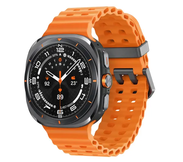: Galaxy Watch Ultra jest wodoszczelny i ma stopień ochrony IPx8 określony w warunkach laboratoryjnych dotyczących zanurzenia w słodkiej wodzie na głębokość do 1,5 metra na maksymalnie 30 minut.