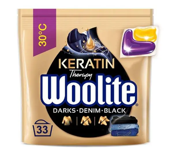 Kapsułki do prania Woolite z Keratyną Czerń, ciemne kolory & jeans 35szt. zawierają bogatą formułą pielęgnacyjną, która nadaje tkaninom niesamowity blask, wygładza ich włókna oraz utrzymuje intensywność czerni i ciemnych kolorów Twoich ubrań w każdym praniu, zachowując ich nowy wygląd na dużej. Olśniewaj z Woolite!<h3>Karta Charakterystyki</h3>Dane dotyczące dostawcy karty charakterystykiZakład pracy:RB (Hygiene Home) Poland Sp. z o.oul. Okunin 1, 05-100 Nowy Dwór Mazowiecki, PolandInfolinia: +48 22 2112694Adres e-mail osoby odpowiedzialnej za kartę charakterystyki: ConsumerCare_PL@rb.com<h3>SKŁAD / INFORMACJA O SKŁADNIKACH</h3>Niebezpieczne składniki w rozumieniu rozporządzenia (WE) 1272/2008 oraz powiązana klasyfikacja:<ul> <li>≥25 - ≤50 % Glycerol</li> <li>≥10 - ≤25 % Alcohols, C10-16, ethoxylated</li> <li>≥10 - ≤25% Alcohols, C12-14, ethoxylated, sulfates, sodium salts</li> <li>≥10 - ≤25 % Propylene glycol</li></ul><table> <tbody> <tr> <td></td> <td>Niebezpieczeństwa: <ul> <li>H302 Działa szkodliwie po połknięciu.</li> <li>H315 Działa drażniąco na skórę.</li> <li>H318 Powoduje poważne uszkodzenie oczu.</li> <li>H319 Działa drażniąco na oczy.</li> <li>H412 Działa szkodliwie na organizmy wodne, powodując długotrwałe skutki.</li> </ul> </td> </tr> </tbody></table><a>Szczegółowa Karta Charakterystyki wyrobu.</a>