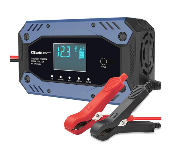 Ładowarka Qoltec 52482 Inteligentna do akumulatora STD AGM GEL LiFePO4 12-24V / 10A Prostownik z funkcją naprawy