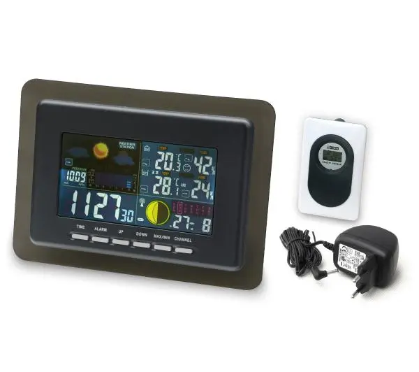 Dodatkowe opcje: budzik, możliwe dodawanie czujników, podświetlany wyświetlacz, pomiar wilgotności, wyświetlanie daty, wyświetlanie faz księżyca, wyświetlanie wschodu i zachodu słońca, wyświetlanie zmian ciśnienia