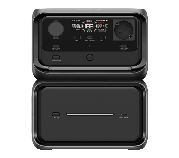 <h2>Przenośna stacja zasilania EcoFlow River 3 Max Plus</h2><p>EcoFlow RIVER 3 Max Plus to zaawansowana stacja zasilania, która łączy funkcjonalność modelu RIVER 3 Plus z dodatkowym akumulatorem, oferując imponującą pojemność 858 Wh. Dzięki mocy wyjściowej 600 W, rozszerzalnej do 1200 W w trybie X-Boost, bez problemu dostarcza energię do wielu urządzeń jednocześnie. Wykorzystanie półprzewodnika GaN (azotek galu) gwarantuje wysoką efektywność energetyczną oraz minimalizację strat ciepła. Lekka i kompaktowa konstrukcja sprawia, że stacja doskonale sprawdzi się w podróży, a wbudowana funkcja UPS zapewnia błyskawiczne przełączenie na zasilanie awaryjne w mniej niż 10 ms.</p> <h2>Zasilanie szerokiej gamy urządzeń</h2><p>RIVER 3 Max Plus oferuje moc 600 W, a w trybie X-Boost może zasilać sprzęty wymagające nawet 1200 W. Dzięki temu bez trudu obsłuży zarówno małe urządzenia elektroniczne, jak smartfony czy laptopy, jak i bardziej wymagające sprzęty, w tym lodówki turystyczne czy systemy oświetleniowe.</p> <h2>Zaawansowana technologia GaN – większa efektywność i bezpieczeństwo</h2><p>Stacja wykorzystuje półprzewodniki GaN, które zapewniają lepszą wydajność niż tradycyjne układy krzemowe. Azotek galu gwarantuje wysoką efektywność energetyczną, skuteczne odprowadzanie ciepła oraz kompaktową konstrukcję urządzenia. Dodatkowo stacja pracuje niezwykle cicho – poziom hałasu wynosi zaledwie 30 dB, co czyni ją idealnym rozwiązaniem do użytkowania także w nocy.</p> <h2>Bogaty zestaw portów dla maksymalnej funkcjonalności</h2><p>RIVER 3 Max Plus został wyposażony w szeroką gamę portów, które pozwalają na jednoczesne podłączenie wielu urządzeń. Do dyspozycji użytkownika są trzy gniazda AC o mocy 600 W (lub 1200 W z X-Boost), dwa porty USB-A o łącznej mocy 24 W, jedno złącze USB-C 100 W, jedno USB-C 140 W oraz gniazdo samochodowe 12,6 V 126 W. Dzięki temu możesz wygodnie ładować elektronikę, korzystać z oświetlenia czy zasilać inne niezbędne sprzęty.</p> <h2>Funkcja UPS – niezawodne zasilanie awaryjne</h2><p>Dzięki funkcji UPS stacja w mniej niż 10 ms przełącza się na tryb awaryjny w przypadku przerwy w dostawie prądu. To rozwiązanie zapewnia nieprzerwaną pracę kluczowych urządzeń, takich jak lodówki czy komputery. Dodatkowo gdy poziom naładowania stacji jest niski, może ona powiadomić serwer NAS lub komputer, umożliwiając zapisanie danych i bezpieczne wyłączenie systemu.</p> <h2>Elastyczne opcje ładowania</h2><p>RIVER 3 Max Plus może być ładowany na kilka sposobów, co zapewnia pełną elastyczność użytkowania. Podłączenie do gniazdka sieciowego lub generatora pozwala na pełne naładowanie w około 2,3 godziny. Istnieje również możliwość ładowania przy użyciu paneli fotowoltaicznych o mocy do 220 W, ładowarki samochodowej lub portu USB-C. Tak szeroki wybór metod ładowania sprawia, że stacja jest idealnym rozwiązaniem zarówno w warunkach domowych, jak i w terenie.</p> <h2>Wytrzymałość i długa żywotność</h2><p>Wyposażony w akumulator LiFePO4, RIVER 3 Max Plus oferuje około 3000 cykli ładowania do 80% początkowej pojemności, co zapewnia nawet 10 lat bezproblemowego użytkowania. Technologia X-Guard chroni urządzenie przed przepięciami, zwarciami oraz przeładowaniem, gwarantując jego niezawodne działanie. Stacja posiada również certyfikat IP54, co oznacza odporność na kurz i zachlapania. Dodatkowo jest zabezpieczona przed upadkami z wysokości do 1,5 m, co zwiększa jej trwałość i niezawodność.</p> <h2>Intuicyjna obsługa i zdalne sterowanie</h2><p>Stacja współpracuje z aplikacją EcoFlow, która umożliwia zdalne monitorowanie i kontrolę pracy urządzenia. Użytkownik może sprawdzać poziom naładowania, moc wyjściową oraz szacowany czas pracy, a także dostosowywać ustawienia. Aplikacja powiadamia również o awariach zasilania i innych istotnych zdarzeniach. Dodatkowo wbudowany kolorowy ekran zapewnia czytelny dostęp do wszystkich kluczowych informacji w czasie rzeczywistym.</p> <h2>Mobilność i duża pojemność</h2><p>Dzięki pojemności 858 Wh stacja RIVER 3 Max Plus może zasilać urządzenia przez długi czas. Mimo dużej wydajności pozostaje niezwykle poręczna – waży jedynie 10,3 kg, a jej kompaktowe wymiary (234 x 224 x 304 mm) sprawiają, że bez trudu zmieści się w bagażniku samochodu czy kampera. To idealne rozwiązanie do ogrodu, na biwak czy podczas podróży.</p>